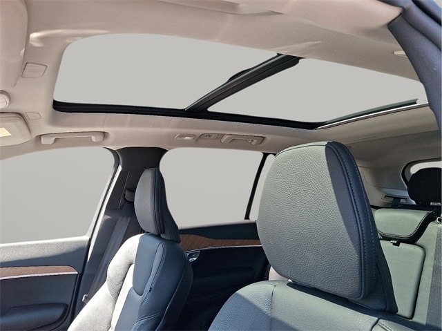 Inside, Volvos Scandinavian design philosophy shines with a cabin built for comfort and real life, featuring **7-passenger seating with leather upholstery, heated front and rear seats, a heated steering wheel, panoramic glass roof with power sunshade, four-zone climate control, air purification system, power seats with memory, and a premium digital cockpit with a 12.3-inch driver display**. Technology is simple and intuitive with **Google built-in including Google Maps and Google Assistant, Apple CarPlay, Bluetooth connectivity, over-the-air updates, SiriusXM capability, and Volvos remote app services** that allow remote start and vehicle controls directly from your phone.
